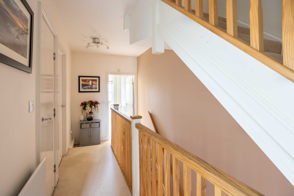 Upstairs: On the first floor, the landing (with airing cupboard) opens to 2 bedrooms and bathroom. Bedroom 1 is a generous double with pleasant views to the front and a smart ensuite shower room whilst bedroom 3 is a good-sized rear single. The bathroom comprises a modern white suite.