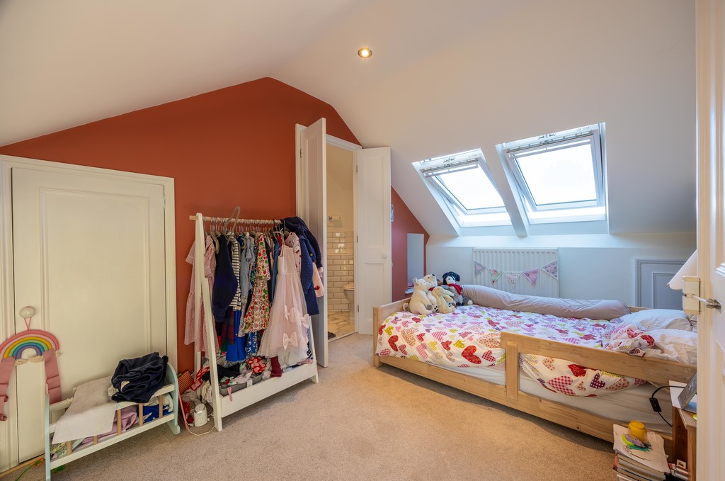 There are 3 Velux windows providing lots of natural light and plentiful eaves storage. There is also the bonus of a refitted ensuite shower room, with shower cubicle, basin and WC.
