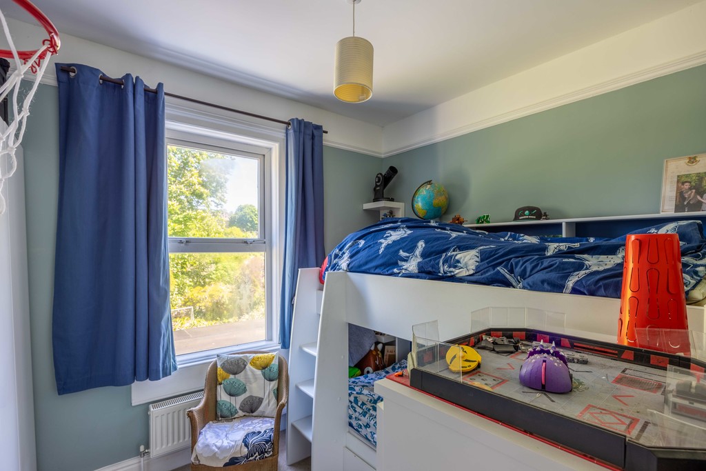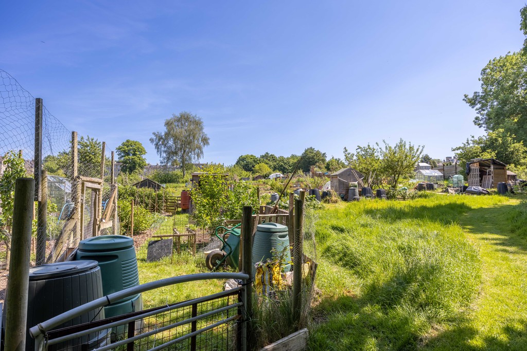 The amazing rear garden is about 60' in length and mainly lawned with a rear patio, flower beds and mature trees. It is a wonderful space for every member of the family and includes a large store space under the decked balcony and gated access directly to the much-loved, Bloomfield allotments. To the side, there is access to the single garage which has an up-over door to the front, power and light and eaves storage space.