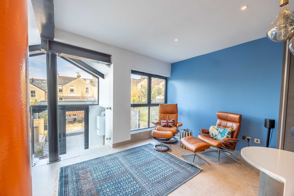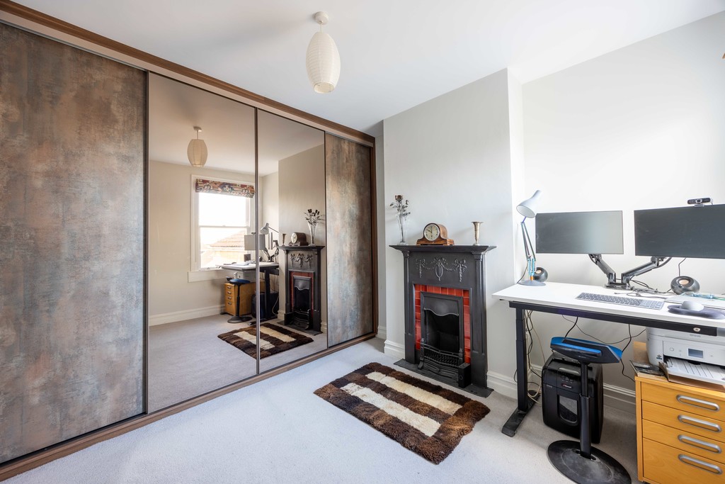 Bedroom 2 is a double bedroom to the centre of the house with attractive fireplace, large, full-width wardrobe and views to the hills of Northern Bath. Bedroom 3 is also an excellently sized room easily taking a double bed and with attractive, rooftop views.