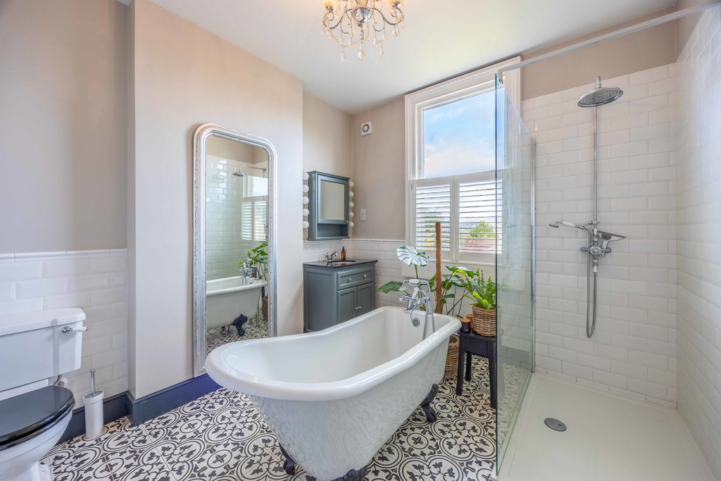 First Floor: Here, there are 2 double bedrooms, bathroom and shower room. Bedroom 1 is a large double with additional splayed bay window whilst bedroom 2 is a rear double room with panoramic views over Bear Flat to the city of Bath.