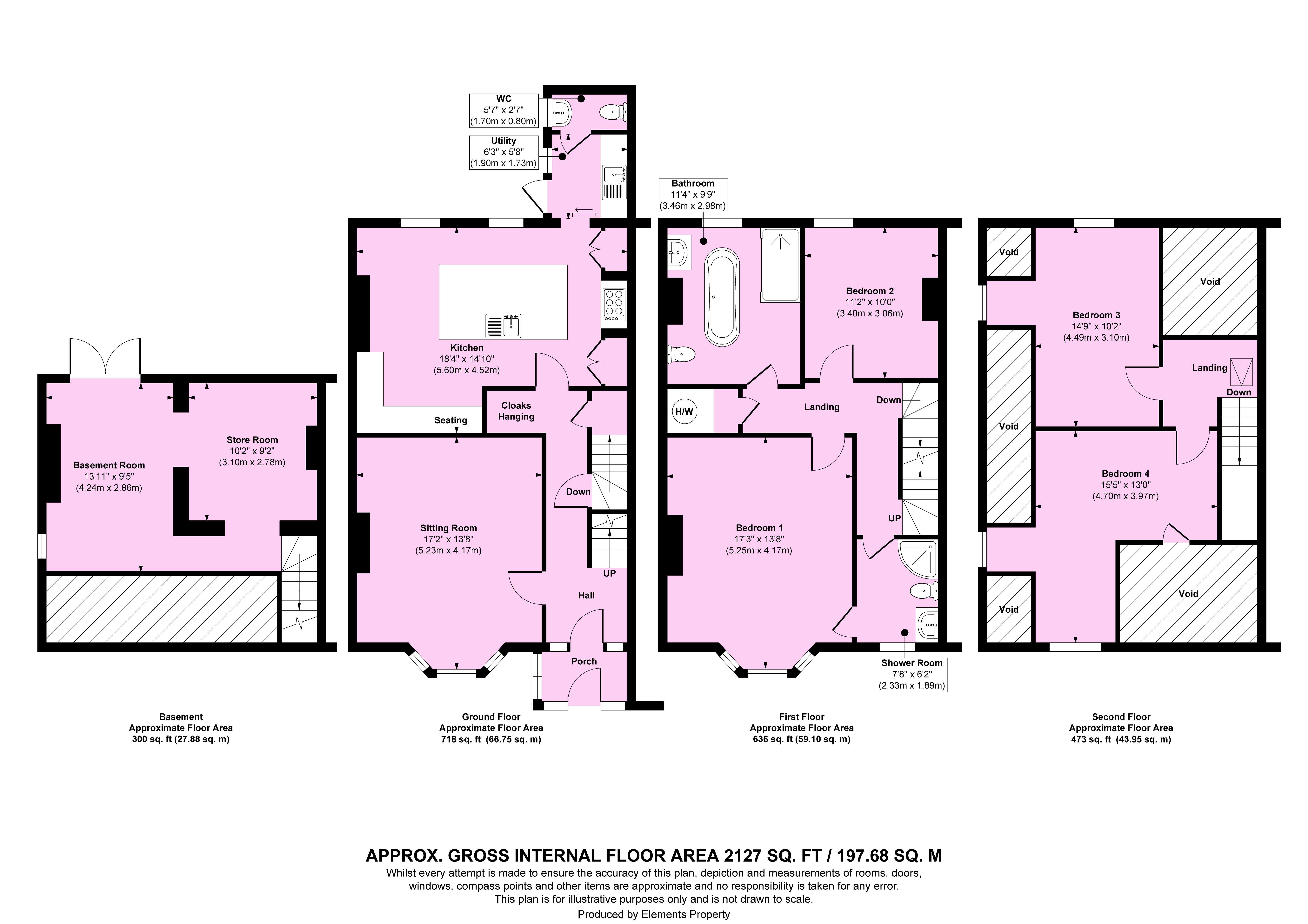 Lower Ground Floor: Accessed both from the hallway and the garden, there is a most useful basement area at the property (head height of approx. 1.88m). A larger room is suitable for use for hobbies or as a small gym whilst the smaller room is a good storage facility. There are ceiling spotlights and power here, with heavy duty conduit wiring.